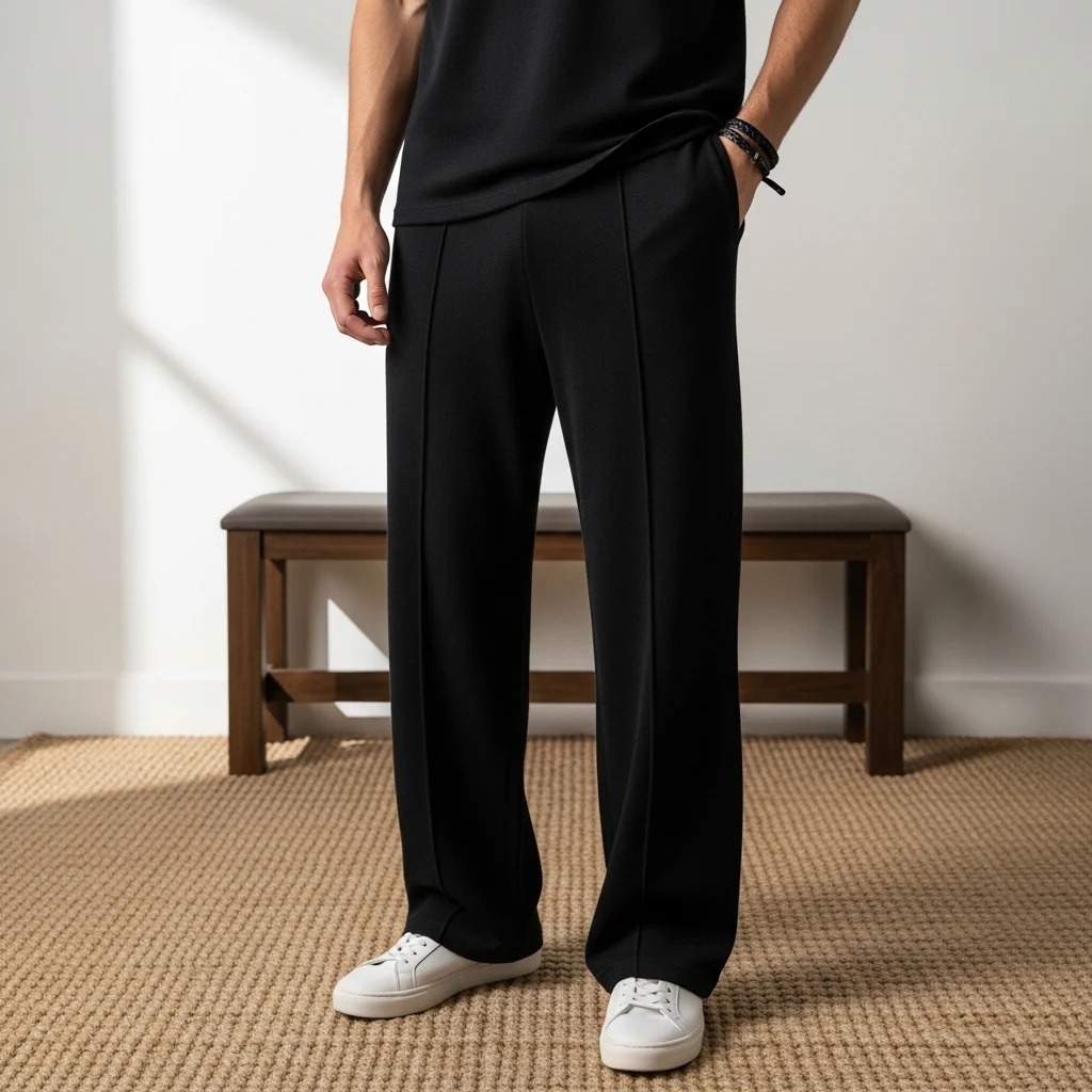 Designed with a mid-rise waist, front pleats, and a tailored straight-leg silhouette, they offer effortless movement while maintaining a polished edge. Whether styled with crisp shirts, polos, or relaxed tees, these trousers adapt seamlessly from workdays to weekends.