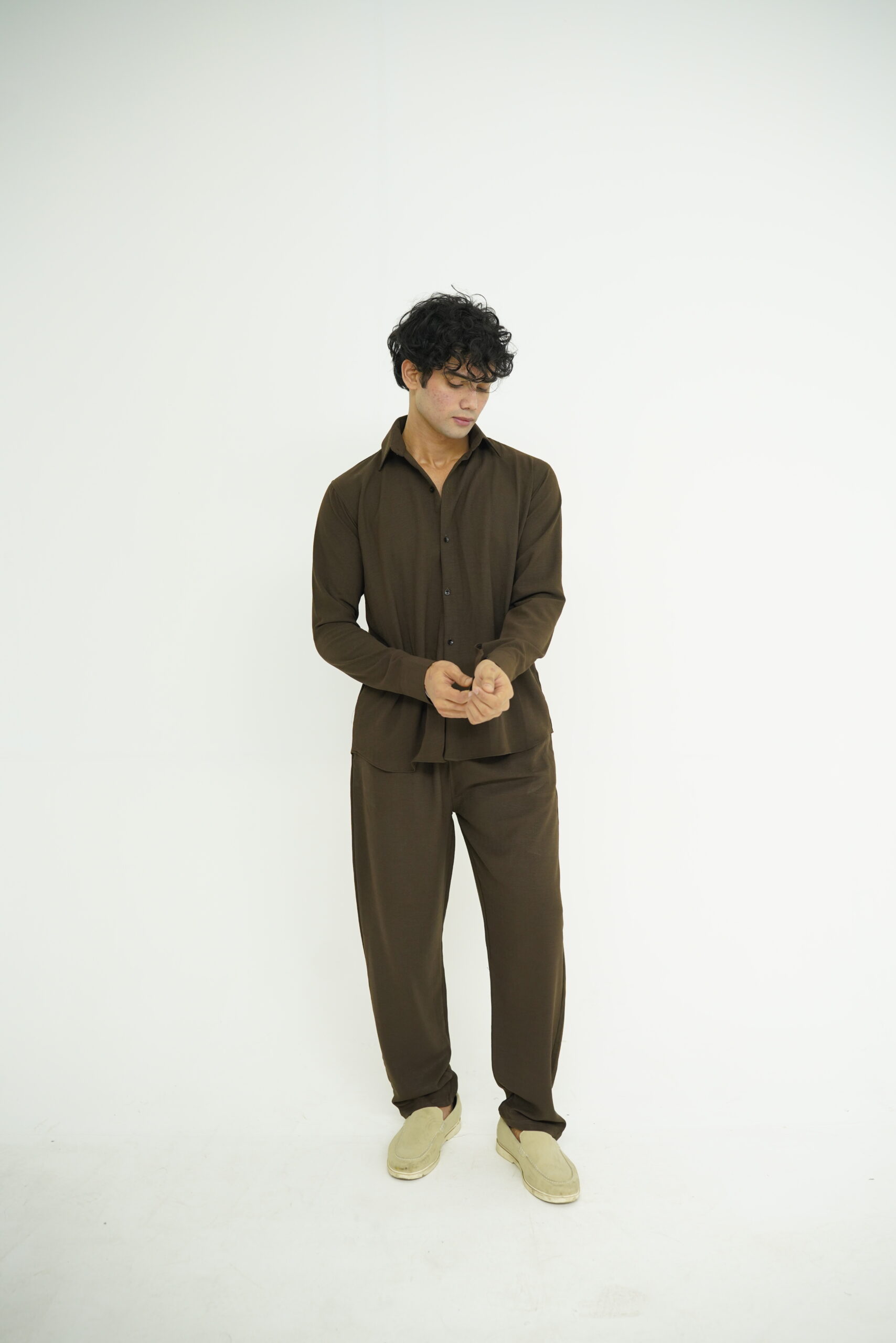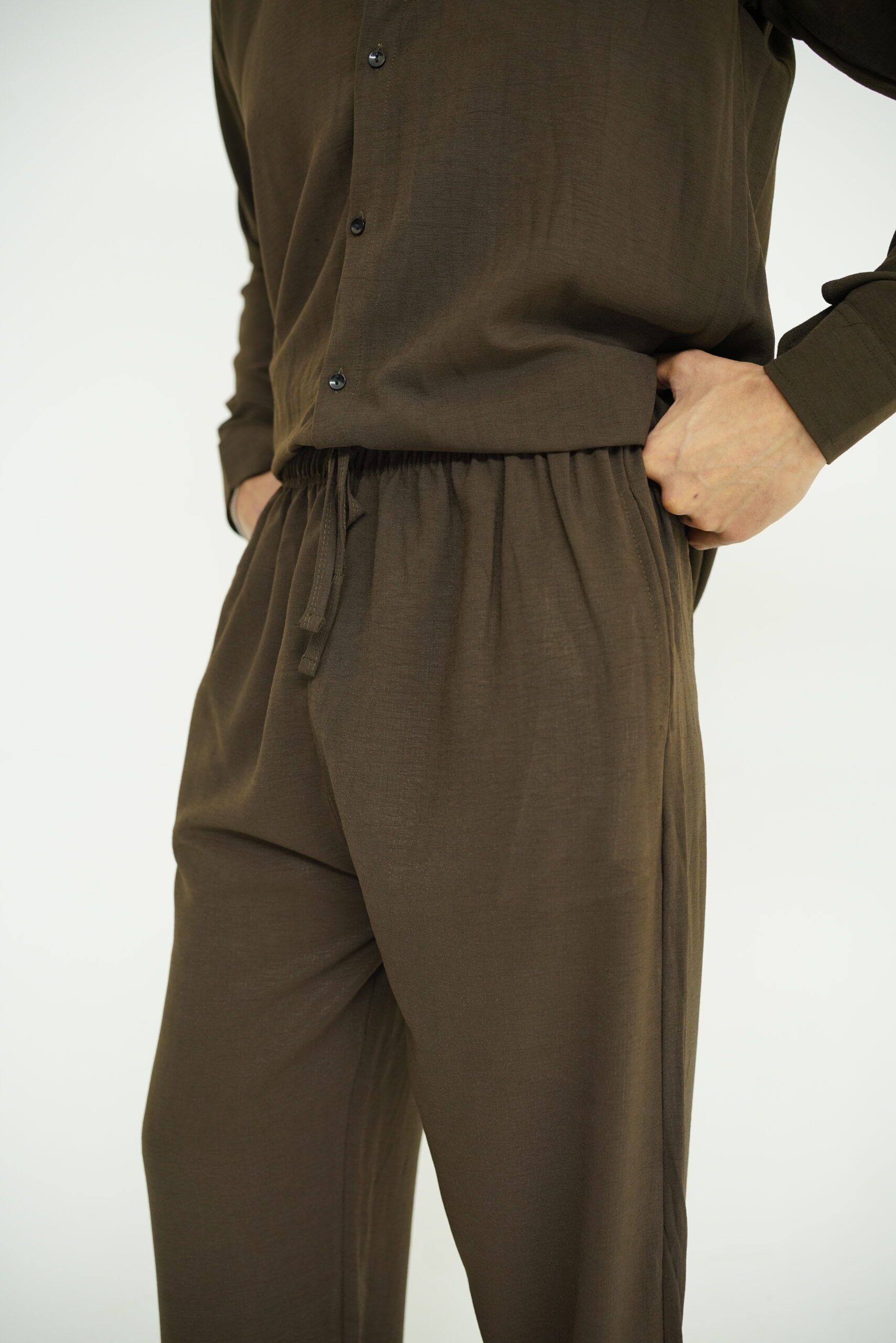 A clean, modern essential, the Brown Linen Textured Cordset by Gentzo is crafted from breathable linen fabric for effortless comfort and a refined, coordinated look. Featuring a rich brown tone with subtle linen texture, this cordset is designed for elevated everyday wear, perfect for both relaxed workdays and stylish weekends.