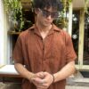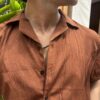 Mocha Textured Resort Collar Shirt