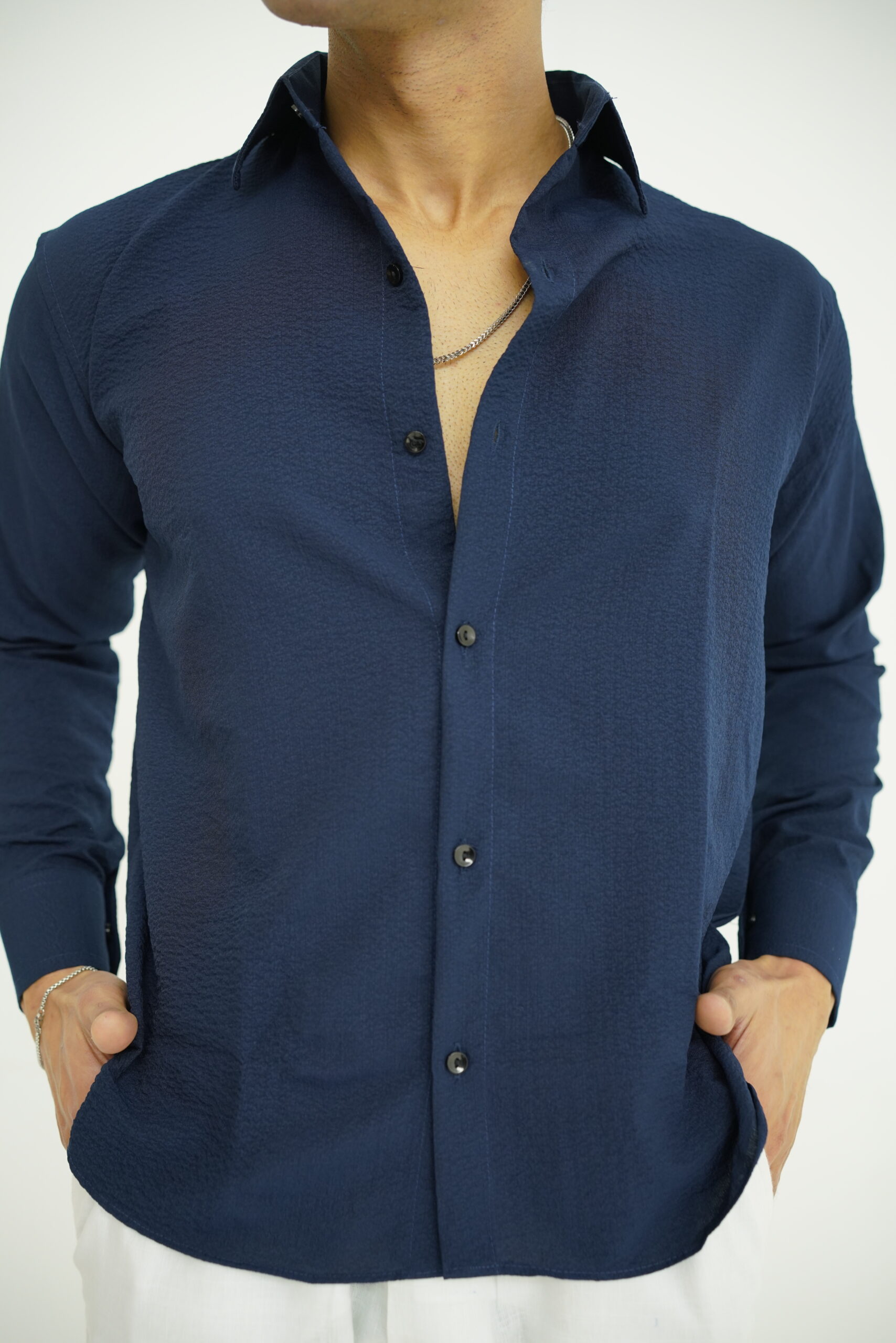 A clean, modern essential, the Navy Textured Waistline Shirt by Gentzo is crafted from breathable textured cotton for everyday comfort and elevated style. Its crisp black tone and subtle texture make it perfect for both workdays and weekends.